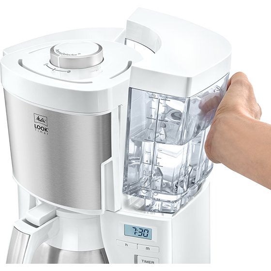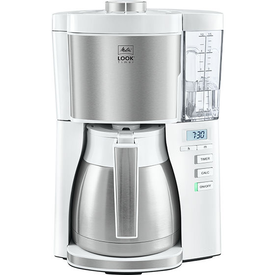 De Melitta® LOOK® Therm Timer zorgt voor langdurig koffiegenot op het gewenste moment! Gewoon water, een koffiefilter en gemalen koffie voorbereiden, de tijd instellen en op het gewenste moment ontspannen van een kopje koffie genieten. En dankzij de dubbelwandige, roestvrijstalen thermoskan blijft ook het tweede kopje betrouwbaar warm en vers.